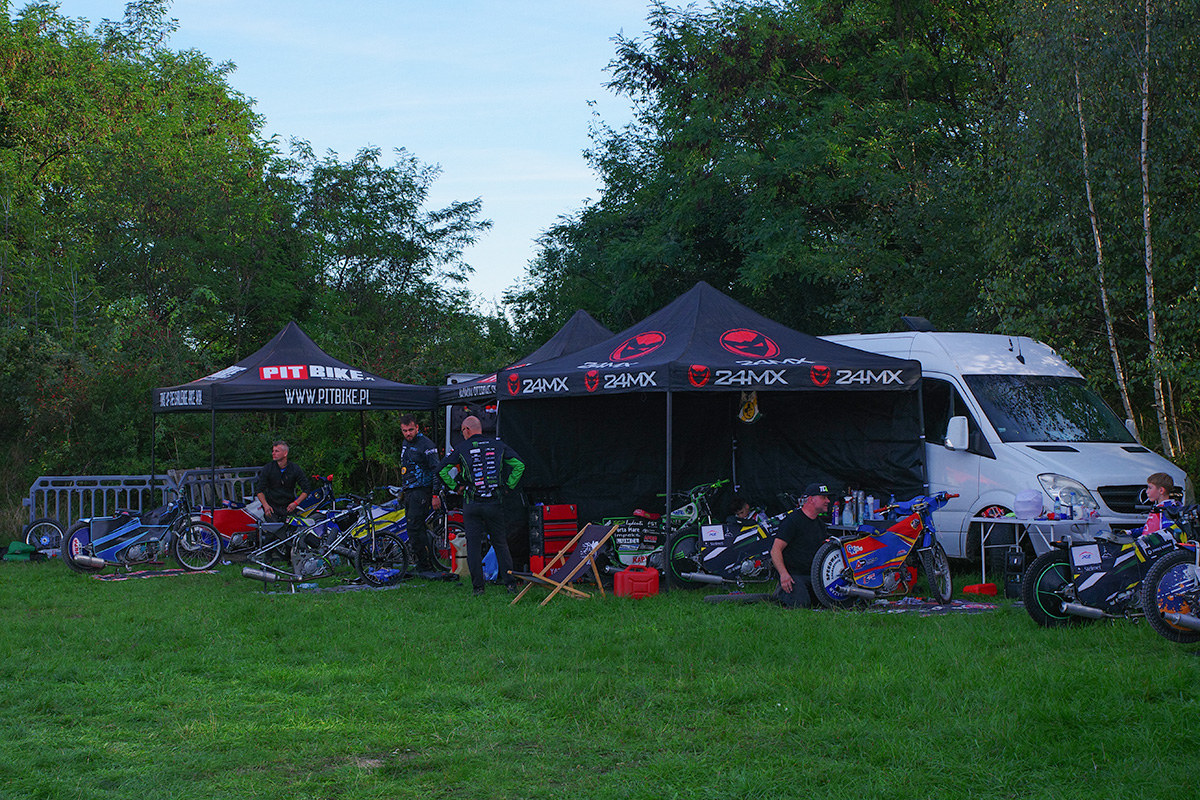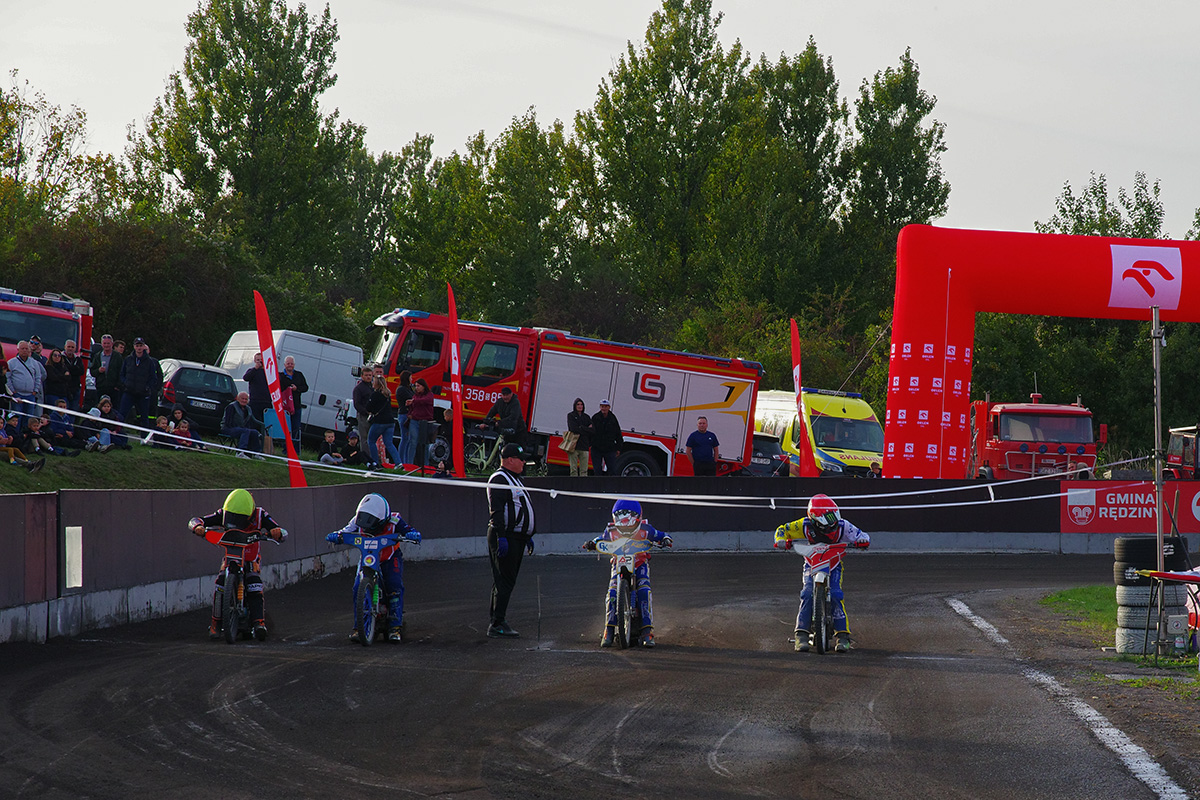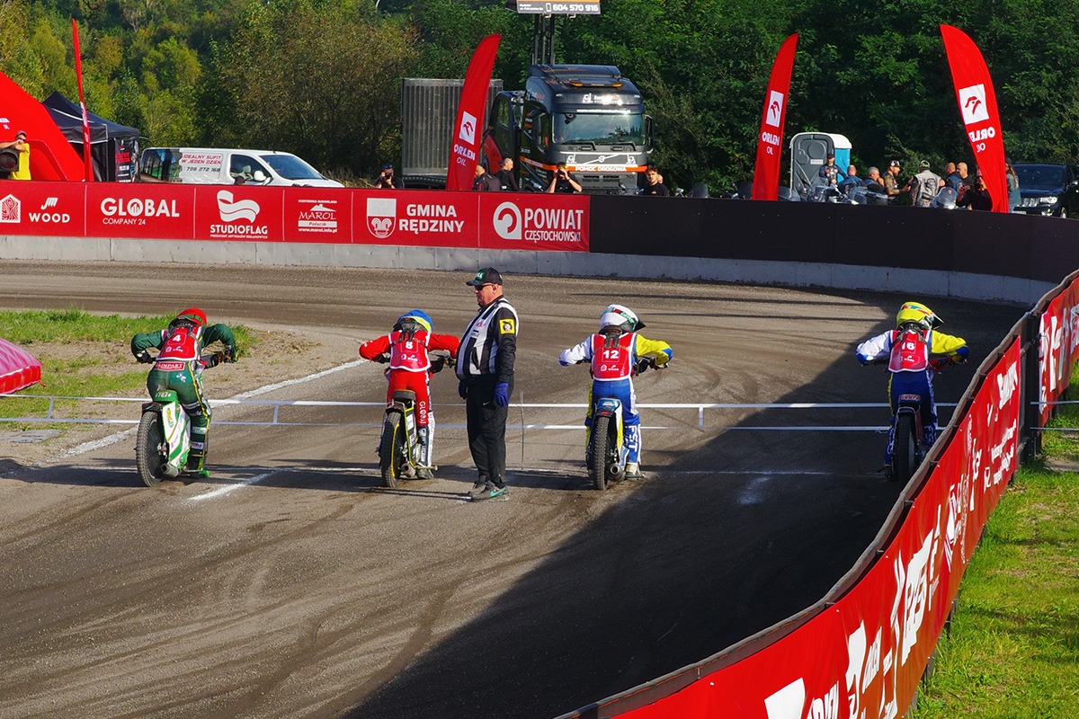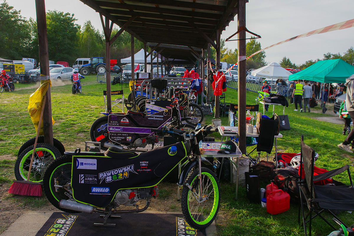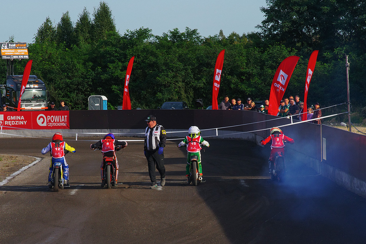 Tor klubu UKS Speedway Rędziny, zlokalizowany jest w Rudnikach (gmina Rędziny) przy ul. Dworcowej. Nie wiedziałem, czego mogę spodziewać się na miejscu. Na szczęście było lokalnie i normalnie. Tor jest bardzo specyficzny, ze stosunkowo długimi prostymi i bardzo krótkimi łukami. Widziałem, że prawdopodobnie część zawodników od trzeciej serii zaczęła płynniej pokonywać te łuki. Fajnie było przejść się po tymczasowym parkingu i czasem podsłuchać ludzi, których znałem z torów żużlowych, tłumaczących swoim podopiecznym sposoby na płynną jazdę. A można było tutaj zobaczyć Jana Ząbika, Andrzeja Jurczyńskiego, Adama Pawliczka, Grzegorza Walaska, Damiana Balińskiego czy Pawła Parysa.