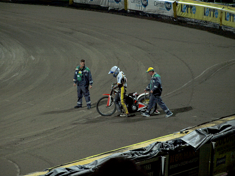 Strasznie rozzłoszczony całą sytuacją był Marek Cieślak i trudno mu się dziwić. Przy niezłym wyniku takie frajerstwo jednego z mechaników oraz kierownika drużyny, który ma dbać żeby wszystko w drużynie przebiegało zgodnie z regulaminem. Ten pan został przez trenera nazwany „pewną częścią do robienia pewnej czynności”. Myślę, że wszyscy się domyślają, co miał na myśli. Jakoś to przetrawi. Obawiam się jednak, że swoją drużynę zmobilizuje tak, że w rewanżu będą trzeszczały kości, a Falubaz nie wyjdzie z 35 punktów. A potrafi to zrobić jak mało kto. Do tego przeciw sobie mamy praktycznie całą Polskę, bo jednak odwalić coś takiego (przepraszam, zadbać o przestrzeganie regulaminu) w półfinale, to naprawdę chamówa. To tak jakby u każdego w samochodzie siedział ukryty policjant i pilnował czy w terenie zabudowanym nie przekracza on 50km/h. Przecież trzeba przestrzegać prawa, prawda? A czy jest kierowca, który choć raz go nie złamał? Nie ma.
