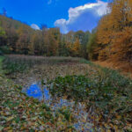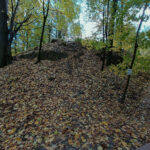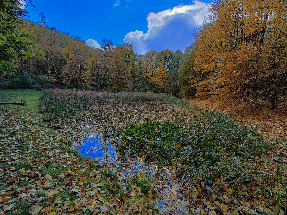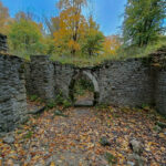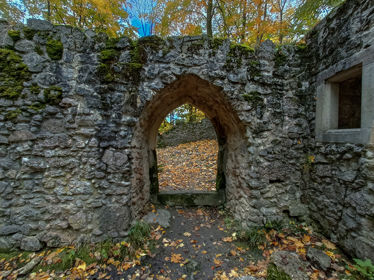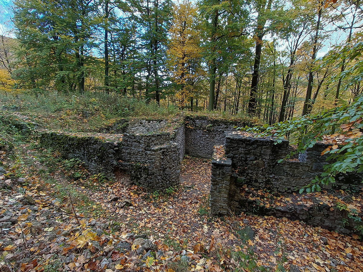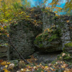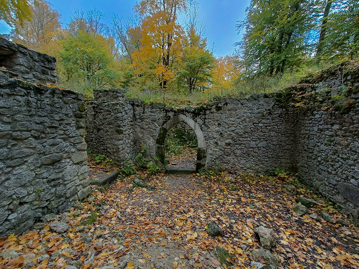 Ok. 250 metrów za Stadionem Emila Zatopka dostępny jest parking przed wejściem do lasu. Potem wchodzi się na asfaltową ścieżkę prowadząca pod górę, w kierunku ruin zamku Šostýn. Potem jeszcze kolejny etap, czyli leśna dróżka wyłożona dywanem z jesiennych liści. Oczywiście pod górę. W ten sposób doszedłem do niewielkiego stawu zamkowego (Hradní rybník). Stamtąd pozostało podejść, oczywiście pod górę, do ruin zamku. Najpierw znalazłem stosy kamieni. Potem okazało się, że należy przejść na kolejną górkę, gdzie pojawiają się jakieś resztki murów. Do najciekawszego miejsca trzeba było zejść w dół. Tutaj został największy fragment, nieco zrekonstruowany.