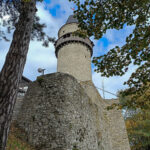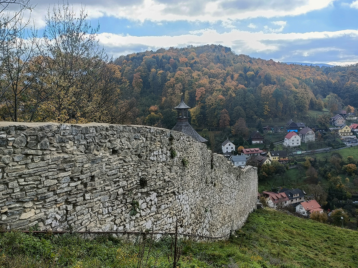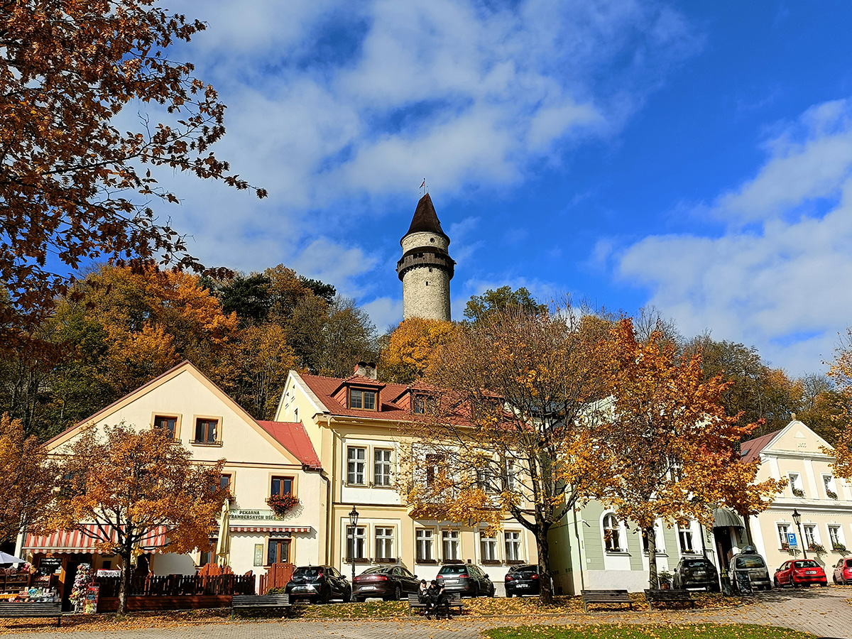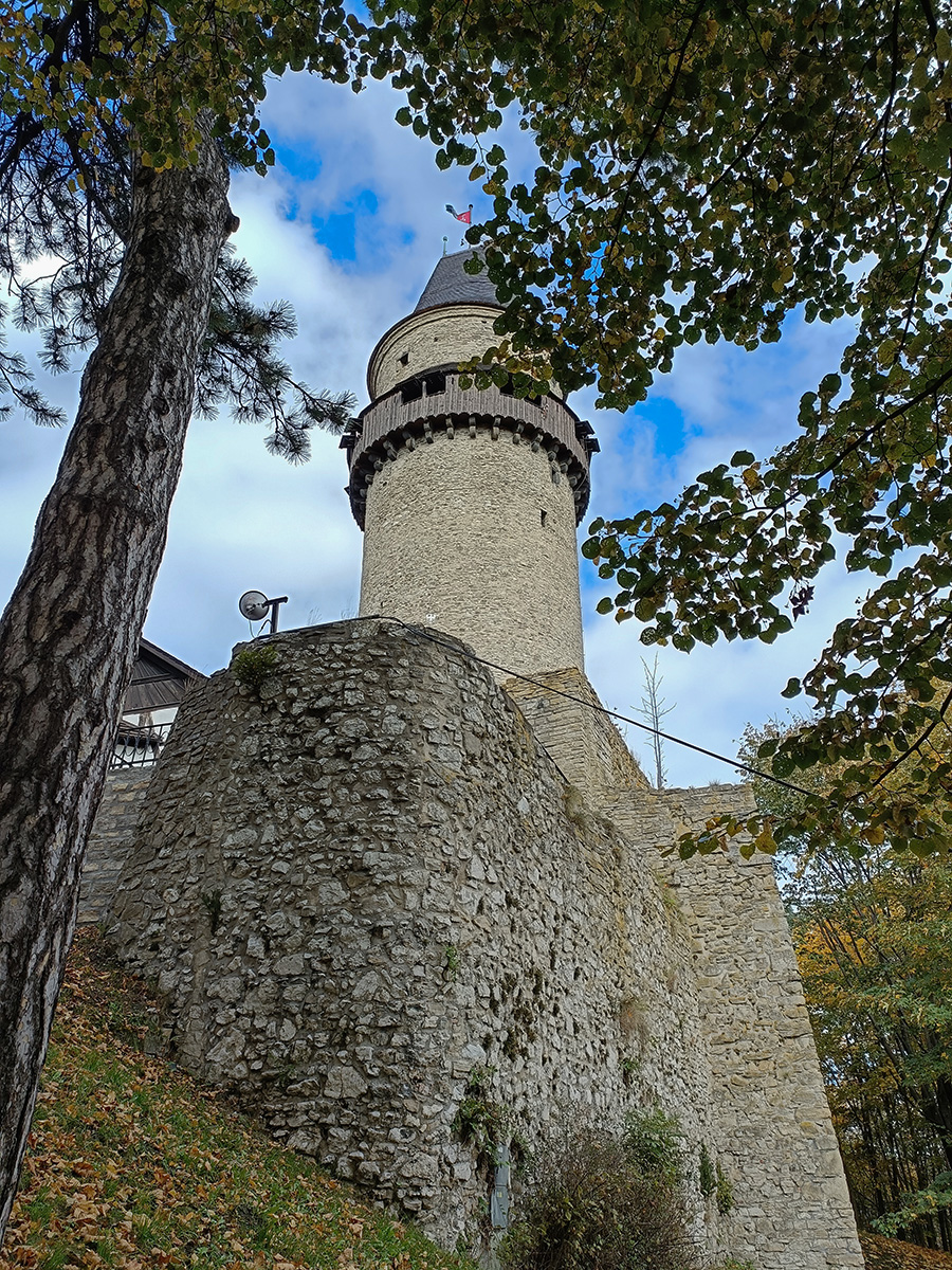 Do zamku trzeba udać się pod górę, Na samą wieżę nie wchodziłem, ale za to podziwiałem krajobraz. Pogodę trafiłem rewelacyjną. Było trochę zimno, ale słonecznie. Wszystko przystrojone przez jesień, która jest tutaj bardzo hojna w dzieleniu się swoimi barwami.