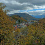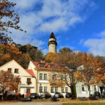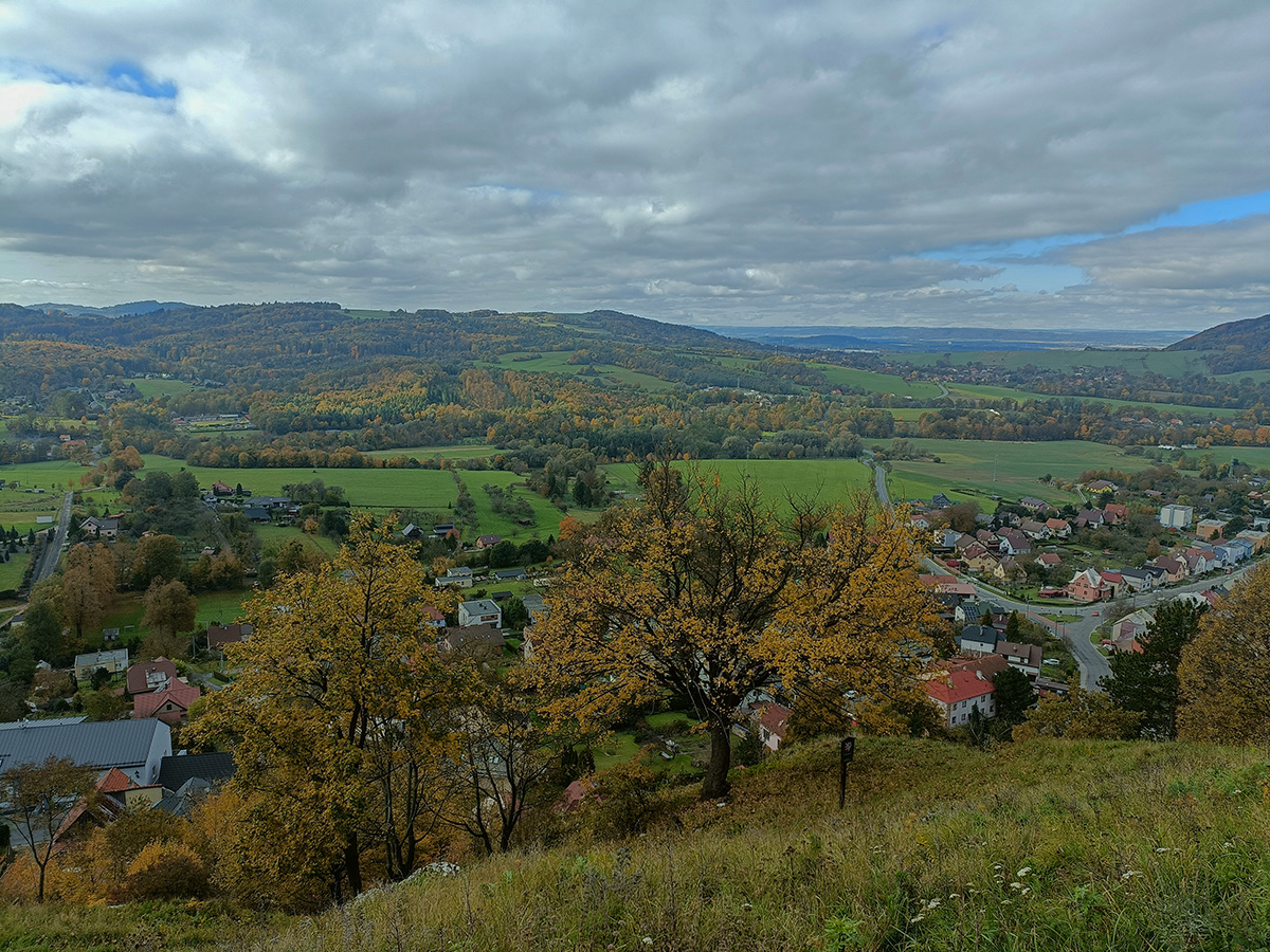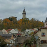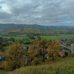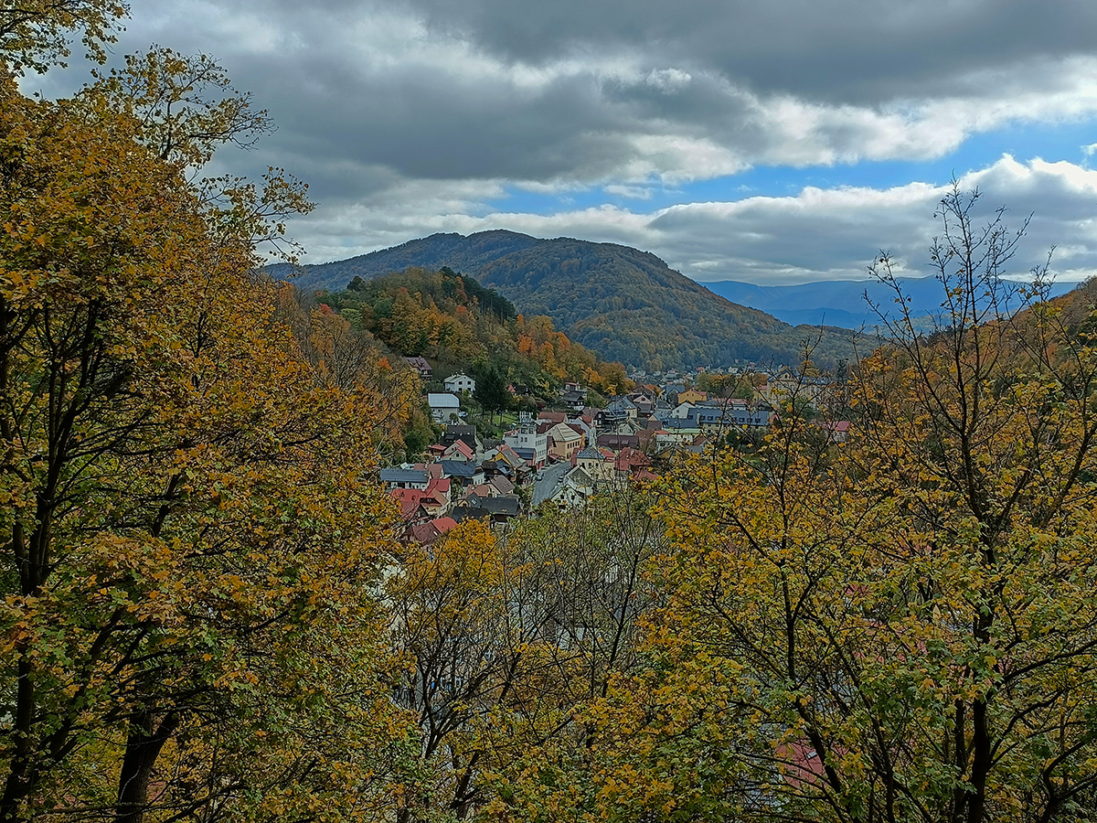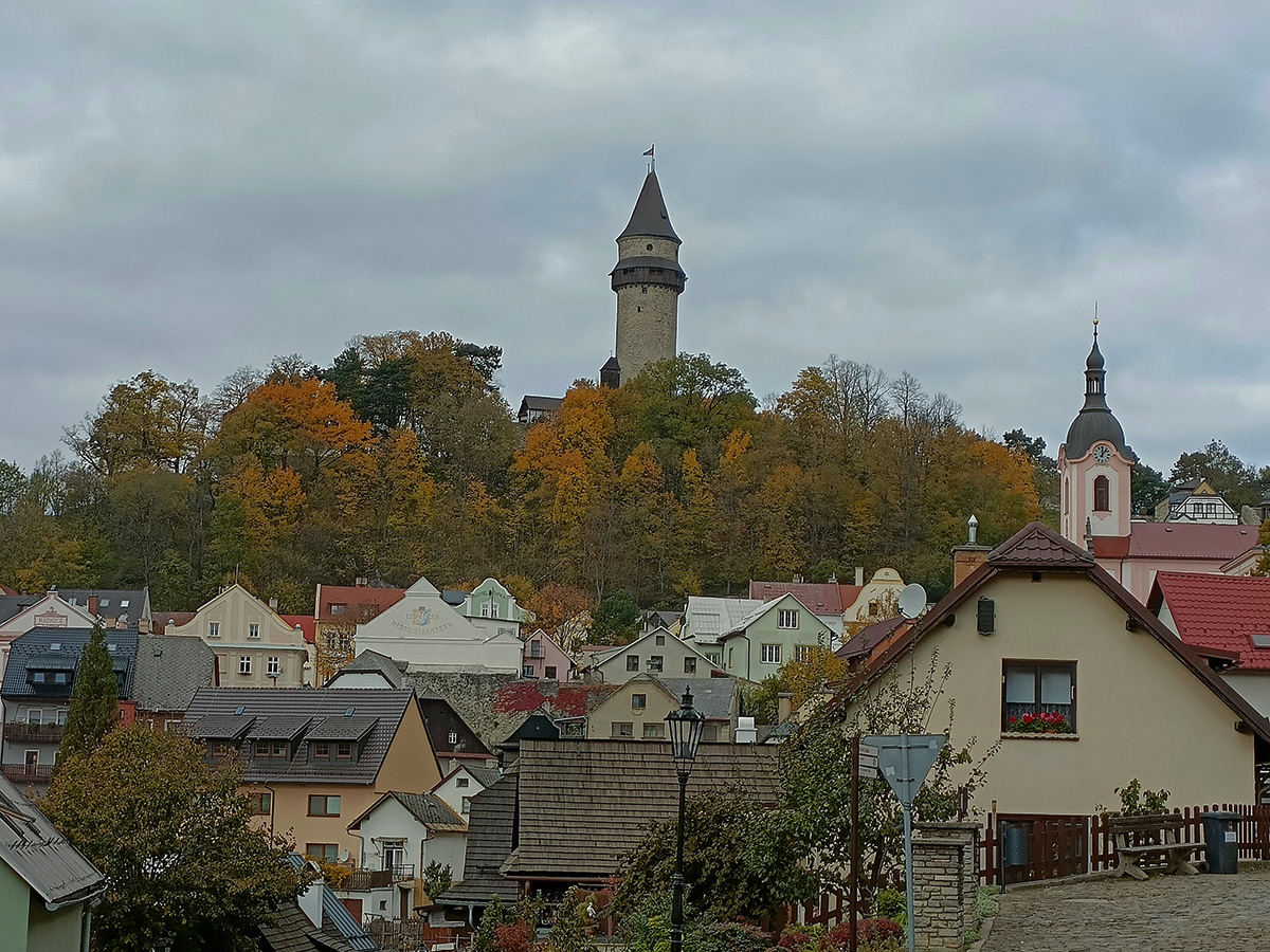 Do zamku trzeba udać się pod górę, Na samą wieżę nie wchodziłem, ale za to podziwiałem krajobraz. Pogodę trafiłem rewelacyjną. Było trochę zimno, ale słonecznie. Wszystko przystrojone przez jesień, która jest tutaj bardzo hojna w dzieleniu się swoimi barwami.