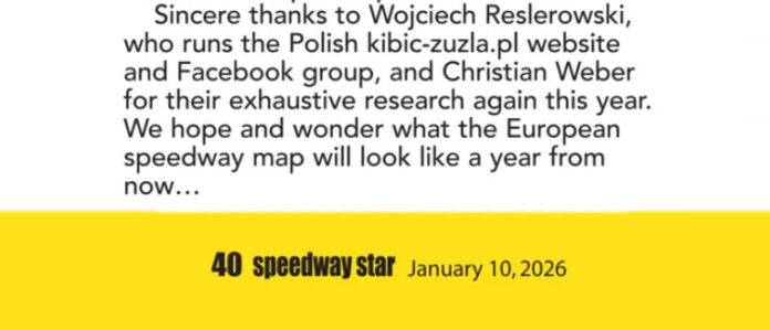 Podobnie jak w latach poprzednich przygotowałem własne statystyki imprez na europejskich torach i statystyki te zostały wykorzystane w artykule w Speedway Star. W treści dodatkowo pojawiły także informacje dotyczące Australii, Nowej Zelandii, Argentyny oraz Rosji, które przygotowali i opracowali Tony McDonald oraz Christian Weber.