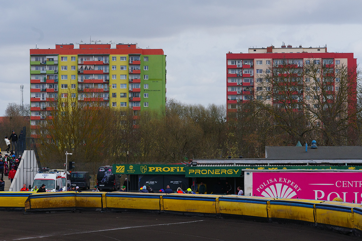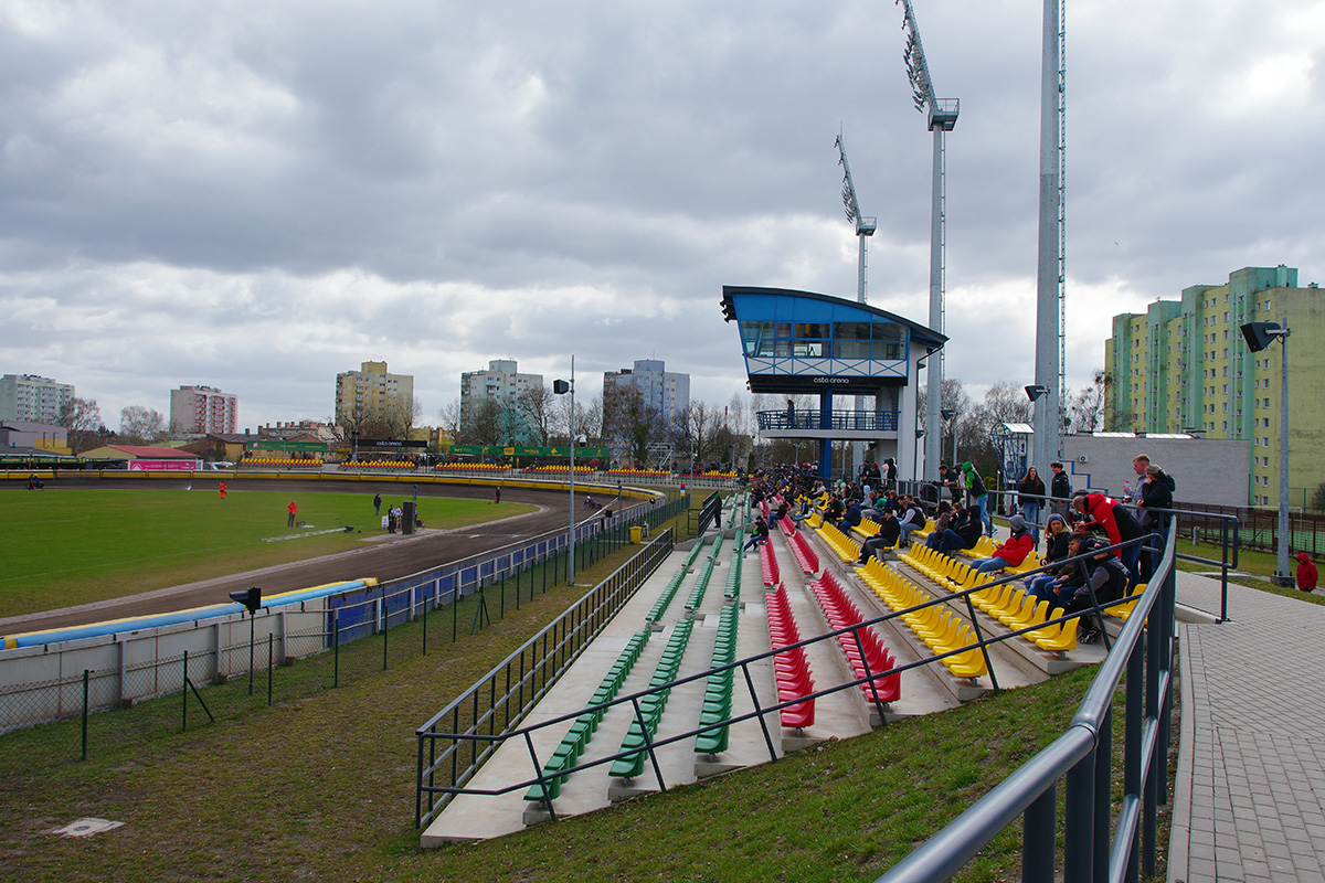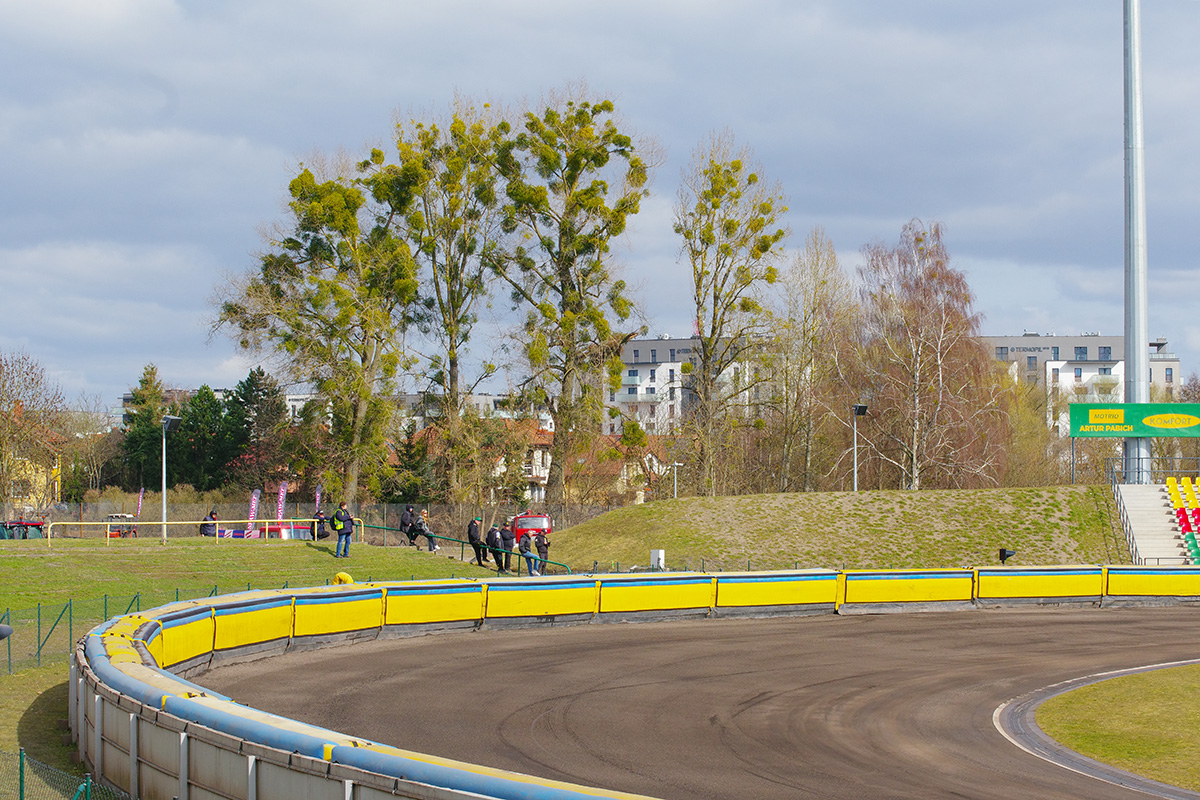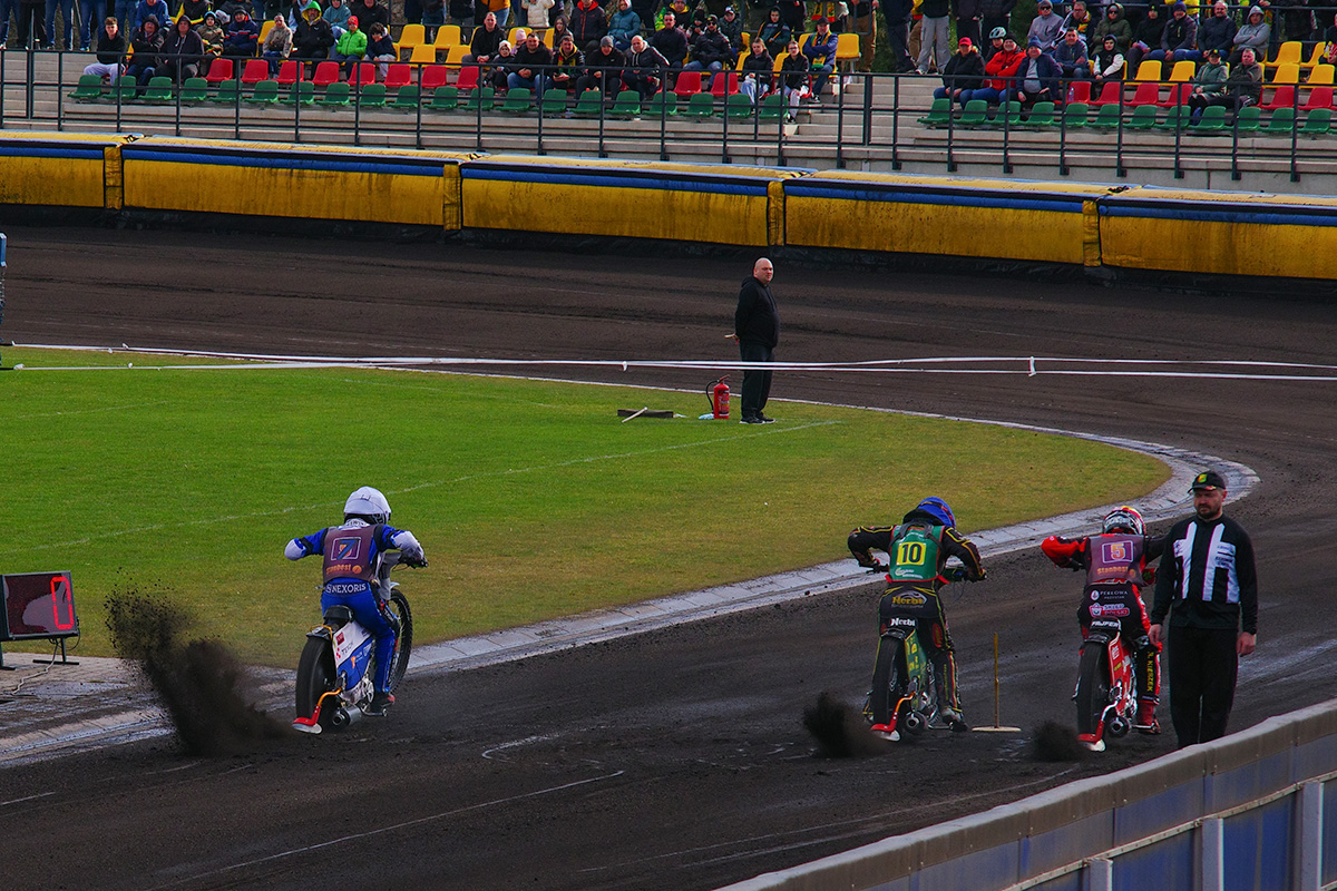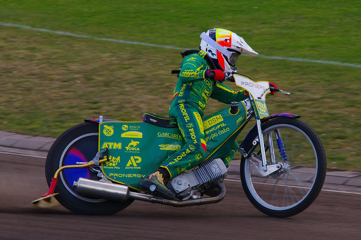 Pilski stadion prezentuje się naprawdę estetycznie. Na trybunach zasiadło trochę kibiców. Wyglądało na wielu, ale jednocześnie trybuny na przeciwległej prostej były zamknięte. Tym, czego (czy raczej kogo) najbardziej zazdroszczę tutejszym kibicom jest spiker Wojciech Dróżdż – klasa sama w sobie. Spokój i merytoryczne podejście.