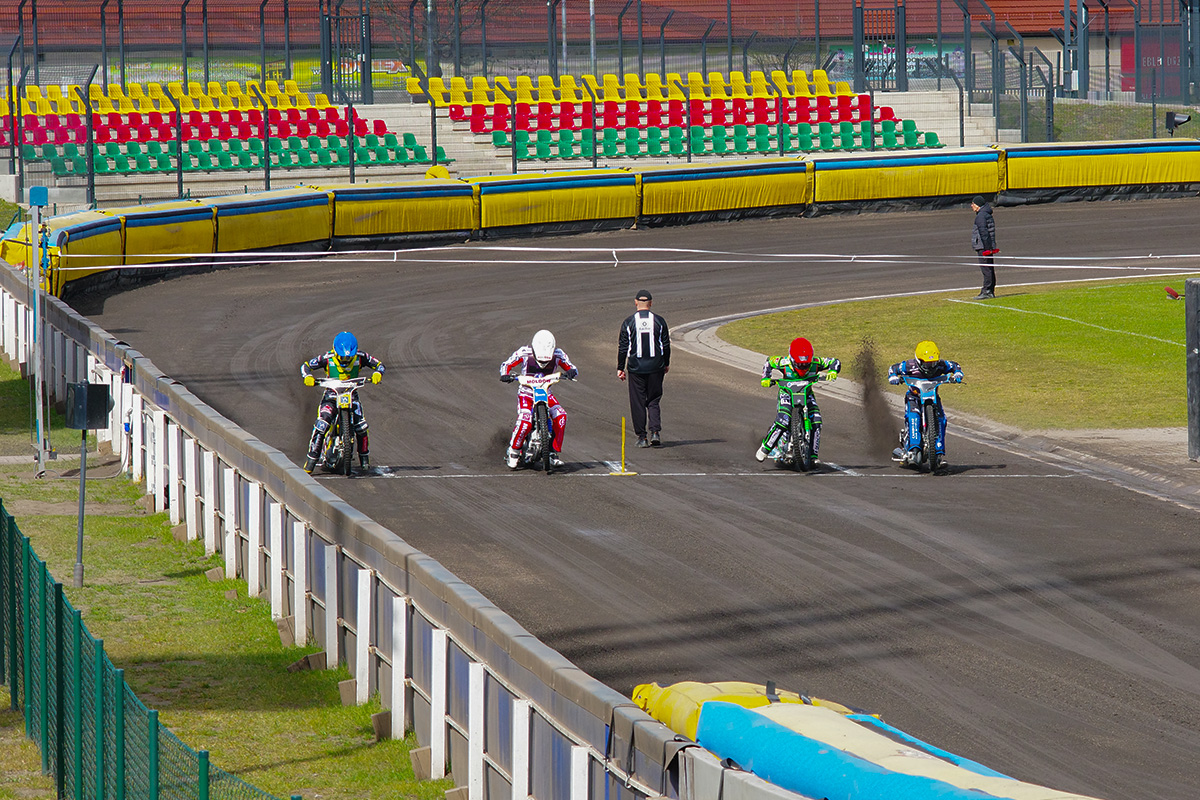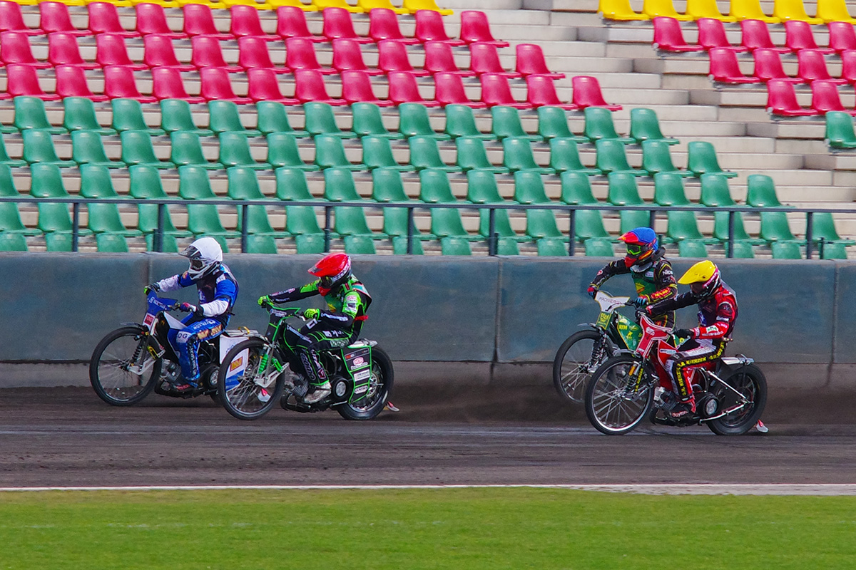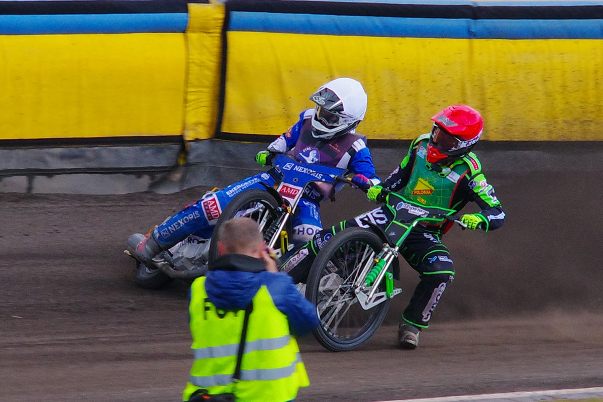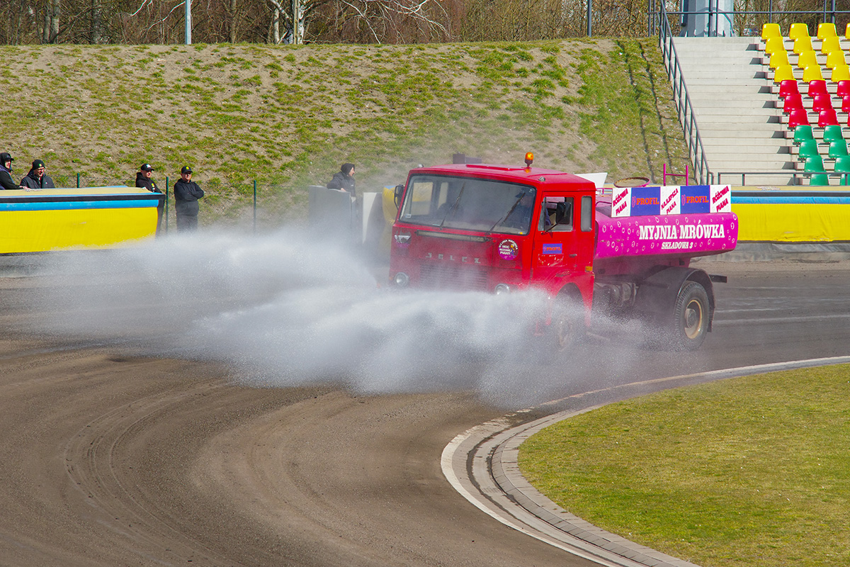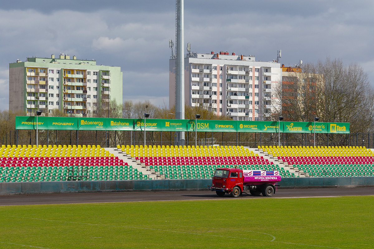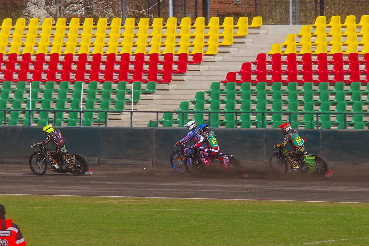 Pilski stadion prezentuje się naprawdę estetycznie. Na trybunach zasiadło trochę kibiców. Wyglądało na wielu, ale jednocześnie trybuny na przeciwległej prostej były zamknięte. Tym, czego (czy raczej kogo) najbardziej zazdroszczę tutejszym kibicom jest spiker Wojciech Dróżdż – klasa sama w sobie. Spokój i merytoryczne podejście.