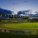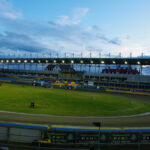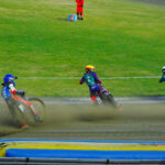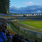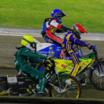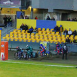 Dla kibiców udostępniono przeciwległą prostą na dolnej trybunie. Okazało się to być w akuratną ilością miejsc. Stanąłem przy barierce na wysokości wejścia w drugi łuk i zacząłem oglądanie tych zawodów. Po wyścigach, których nie widziałem, Falubaz prowadził 11:13, czyli wyglądało na to, że poniedziałkowa porażka u siebie była swego rodzaju wypadkiem przy pracy.