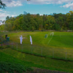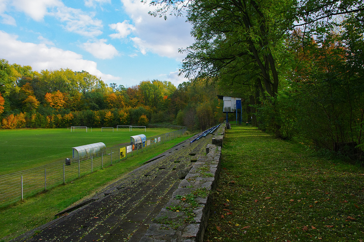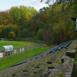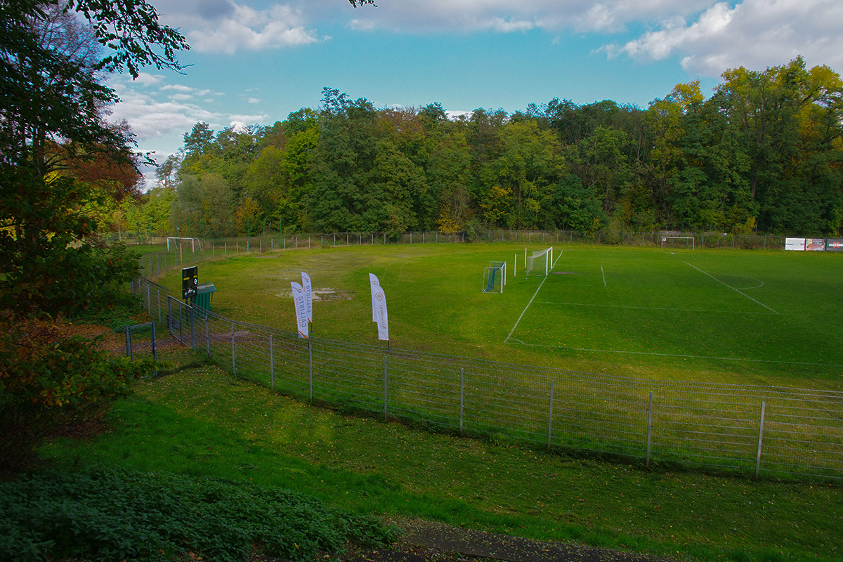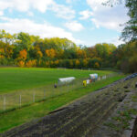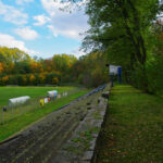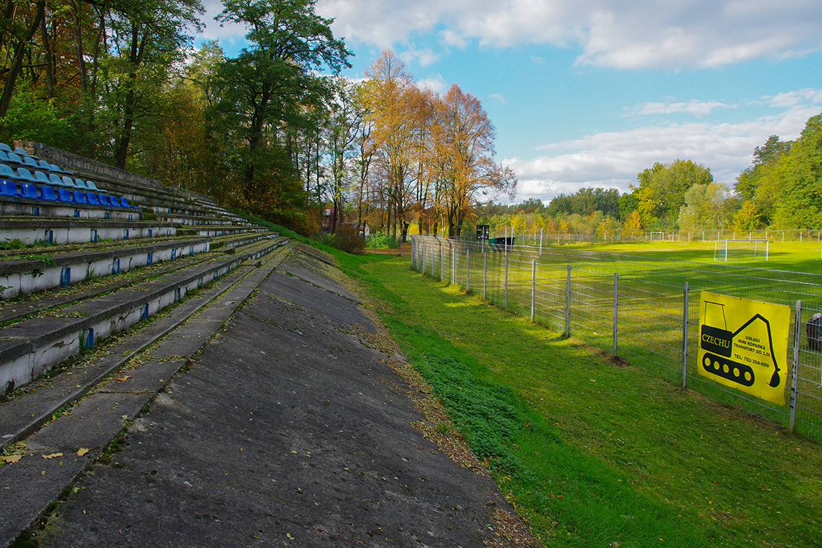 Zdjęcia satelitarne na mapach Google zasugerowały mi, że tor jest jeszcze widoczny. Na miejscu okazało się, że wygląda to trochę inaczej. Dawny tor jest aktualnie trawnikiem, ale da się jeszcze zauważyć krawężnik i miejsce po bandzie. Większość dawnego owalu znajduje się jednak za siatką, którą otoczony jest teren boiska piłkarskiego.