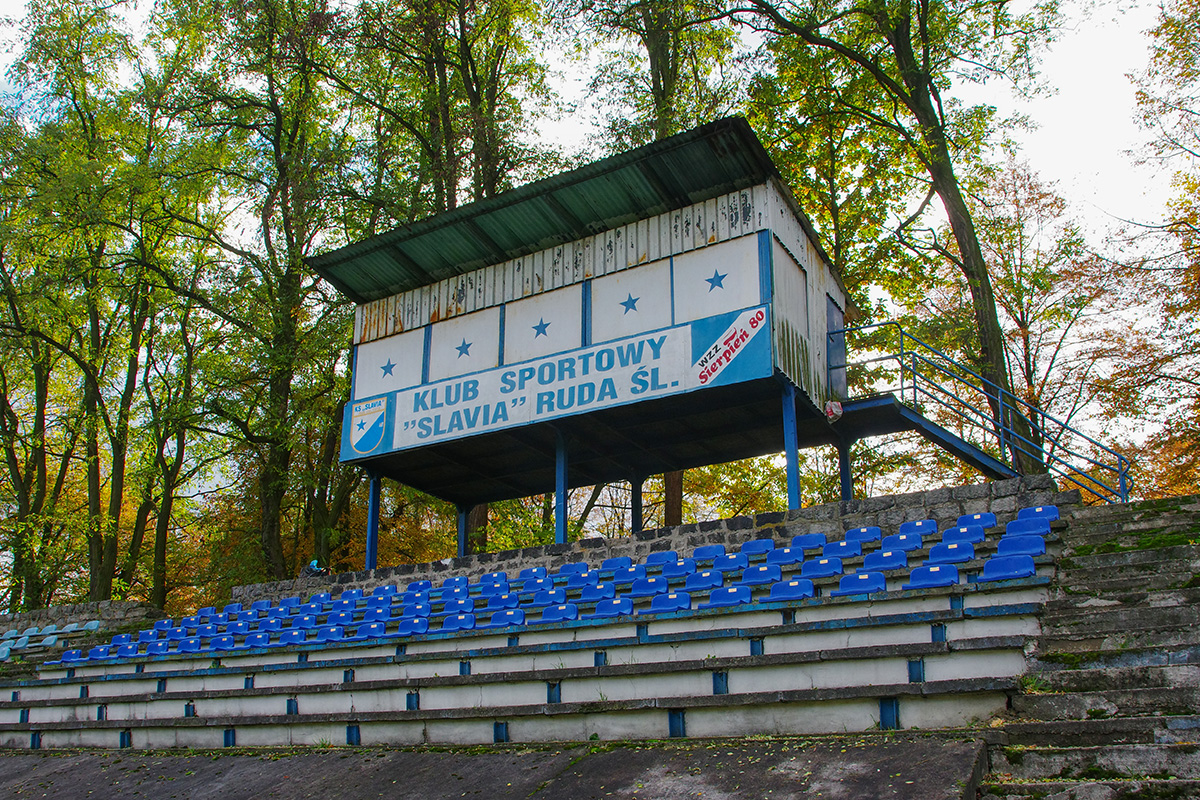 Pierwsze zawody żużlowe na stadionie Slavii rozegrano 17 czerwca 1976 roku (ćwierćfinał IMP). Kiedy otwarto tor na Skałce, a żużlowcy Śląska powrócili do Świętochłowic, obiekt w Rudzie Śląskiej coraz rzadziej gościł żużlowców. Funkcjonował jeszcze do początku lat 90-tych. Ostatnie zawody (mecz II ligi Śląsk Świętochłowice – Polonia Piła) rozegrano 7 czerwca 1992 r.
